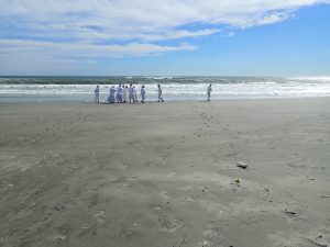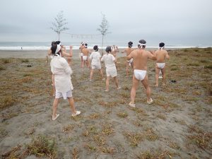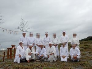 今回は台風22号が通過して23号が来る直前に行われましたので、台風情報は気になりましたが、結局恐れていた台風の直撃はありませんでした。曇りが多く奇麗な日の出は拝めませんでしたが、それはそれとして禊としては良かったのかと思います。先輩からは、禊期間中に晴れたり雨が降ったりいろいろな天候がある方が良い(つまり陰陽の両方があったほうが良い)と言われております。また、参加者も男女それなりに混ざっているのが良いとも聞いています。今回参加者は14名で、女性は3名。波は強い波もありましたが、比較的素直な波で、意地の悪い感じの波ではありませんでした。曇り空の下、気温、水温は比較的温かく、気持ちの良い禊ができました。参加者の皆さんは、それぞれ得るものがあってお帰りになったことと思います。